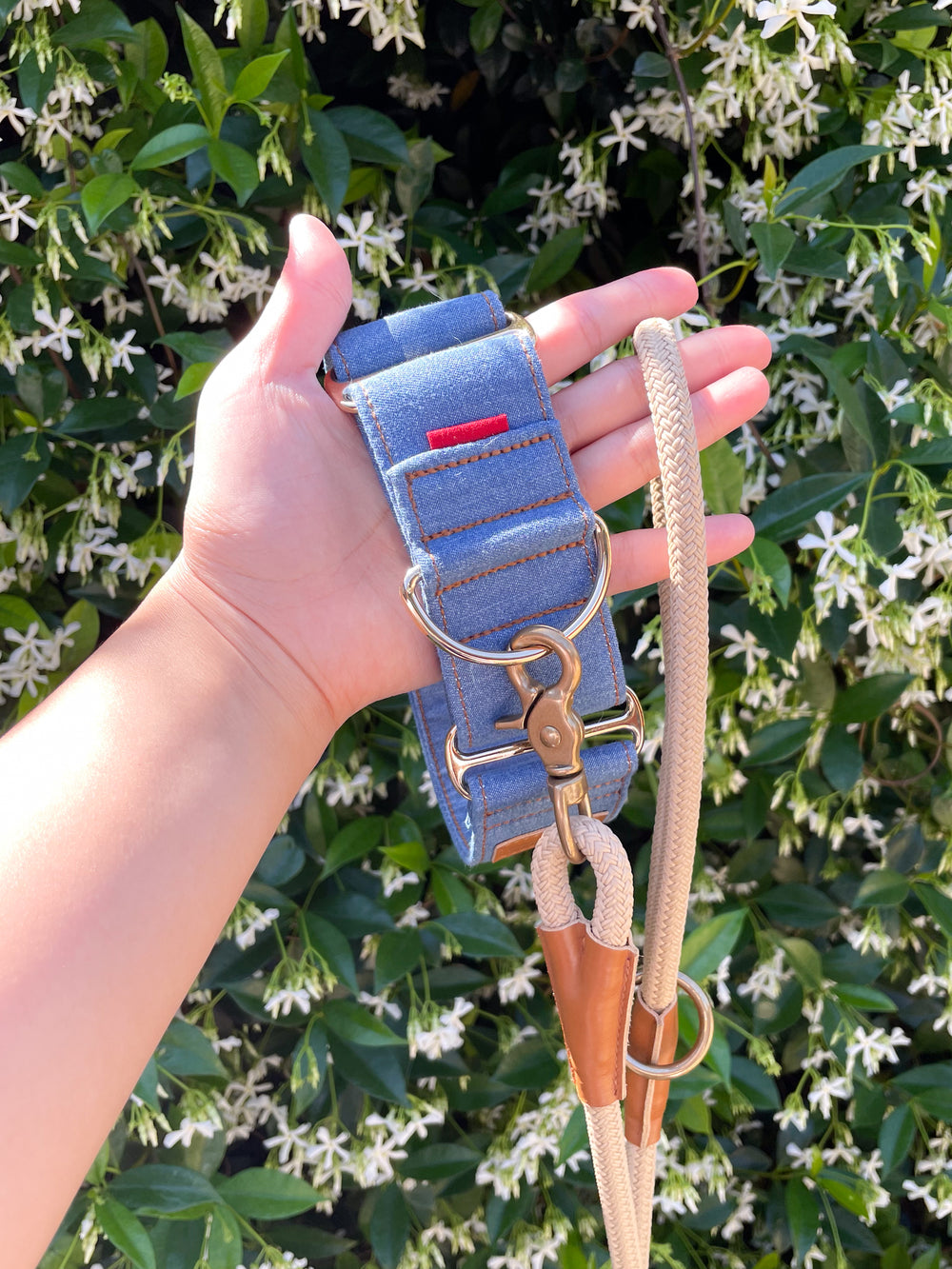 Martingale Collar & Rope Lead Set | Mid Blue Denim (with Beige Leash)