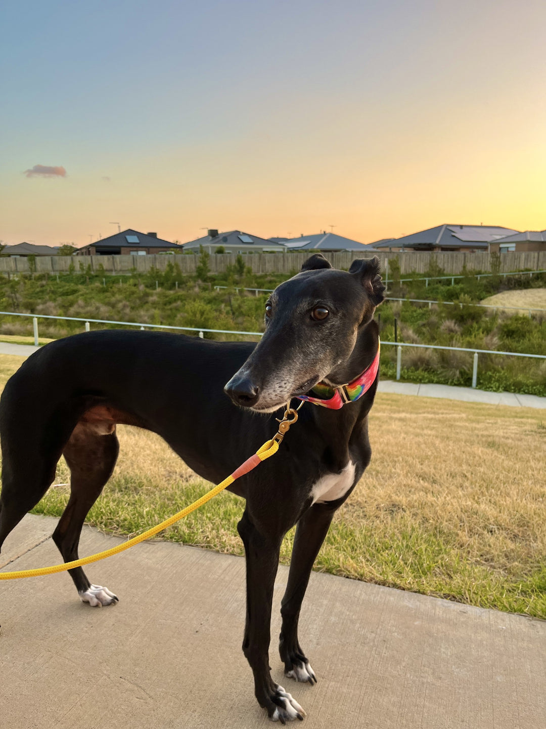 Let your cool hound show off their unique style with this Martingale Dog Collar - Rainbow Paddle Pop. Its colourful and fun rainbow tie dye print will turn heads and make tails wag!