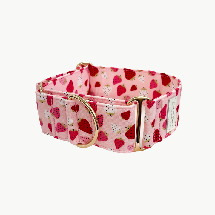 Introducing the Strawberry Gelato Wide Fabric Martingale Collar—a playful and stylish choice for greyhounds, whippets, and Italian greyhounds. Featuring a charming strawberry pattern in soft pink, this strawberry martingale collar is perfect for hounds who love to stand out.