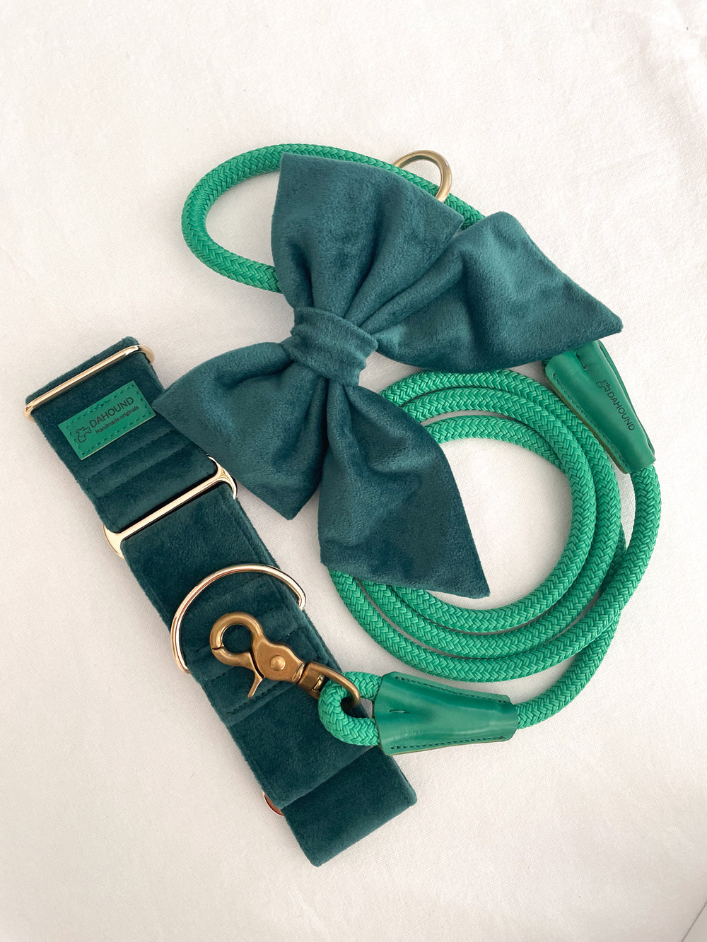Martingale Collar + Sailor Bow + Rope Lead Set | Dark Forest Green (Plush Velvet)
