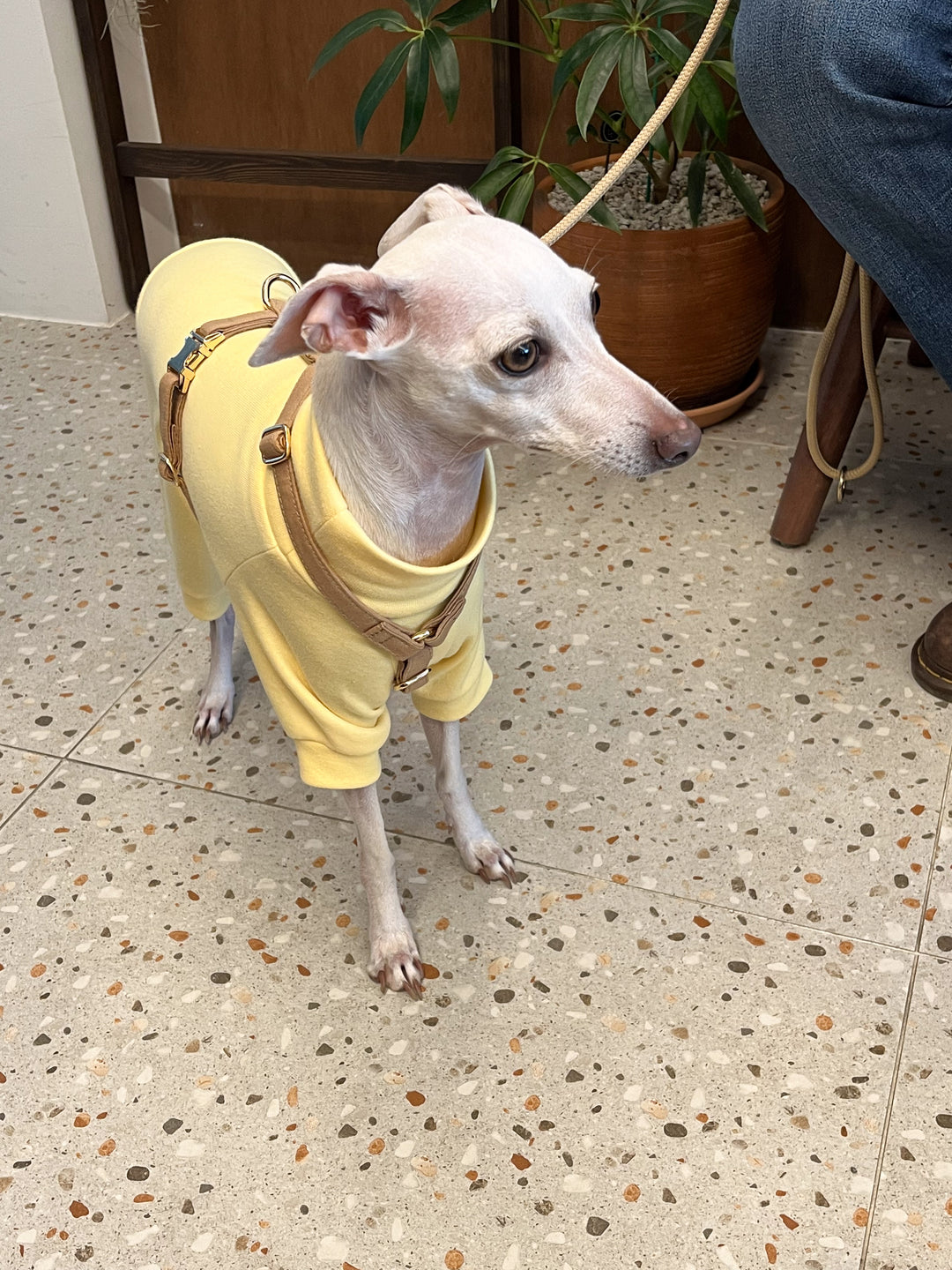 Daha (White Italian Greyhound): Male 5.3kg / Neck 24cm / Chest 46cm / Martingale Collar Size XS / Harness Size S / Leash Size Petite
