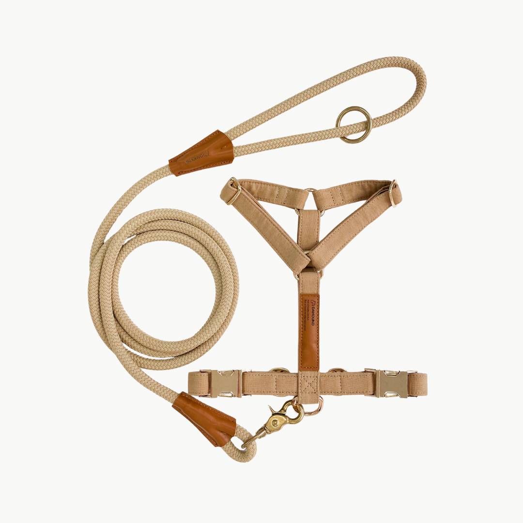 Spoil your four legged best friend with our luxurious dog harness in beige colourway with trendy leather detail. Our harness is not only comfy but also super easy to put on—just two steps and they're ready to go.