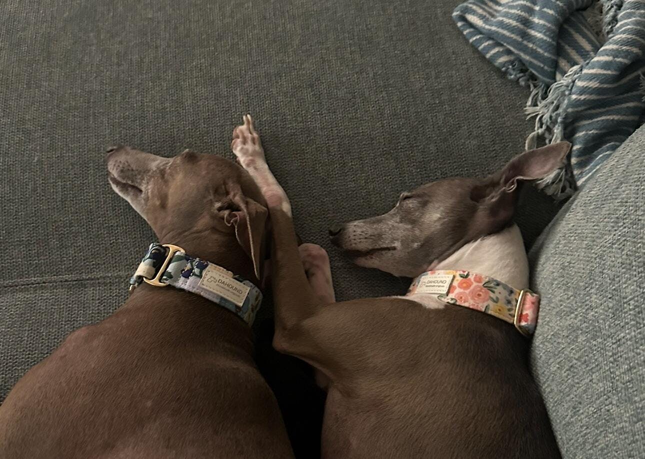 Our geriatric Greyhound is looking very stylish in his beautiful new collar and matching lead. I like that the lead is a little longer than other leads too.