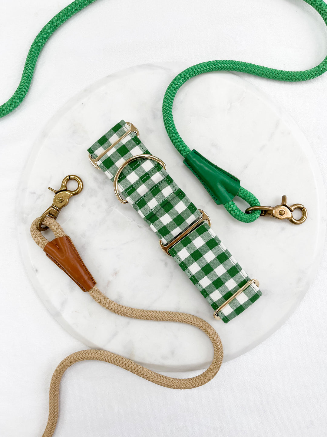 Green Gingham Plaid Martingale Collar With Rope Leashes